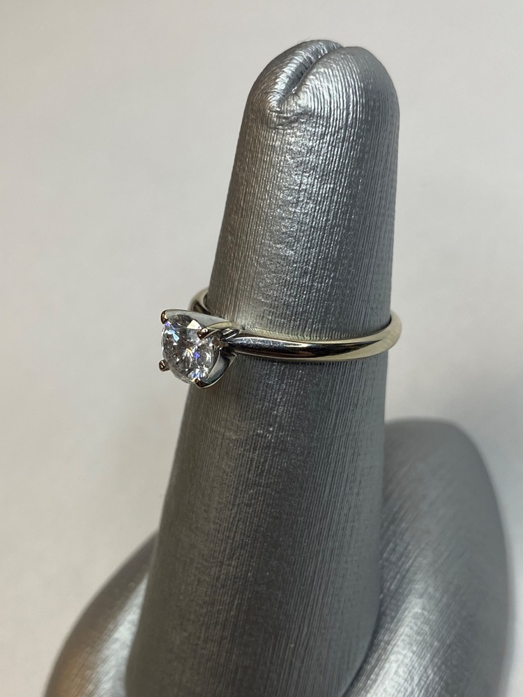 This beautiful 14KT white gold solitaire ring features a stunning .75 carat round brilliant diamond that embodies classic elegance and enduring value. Designed to let the diamond take center stage, the clean solitaire setting highlights the stone’s natural brilliance and fire, making it a timeless choice for an engagement ring or heirloom-quality gift.