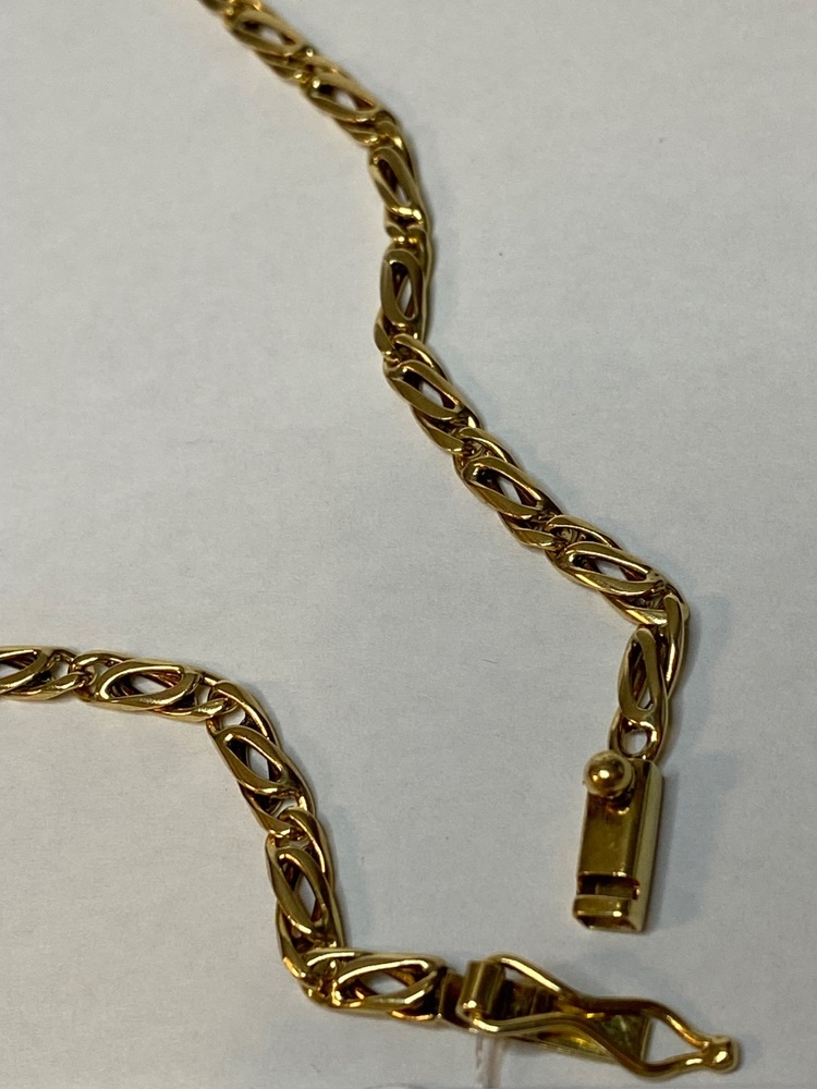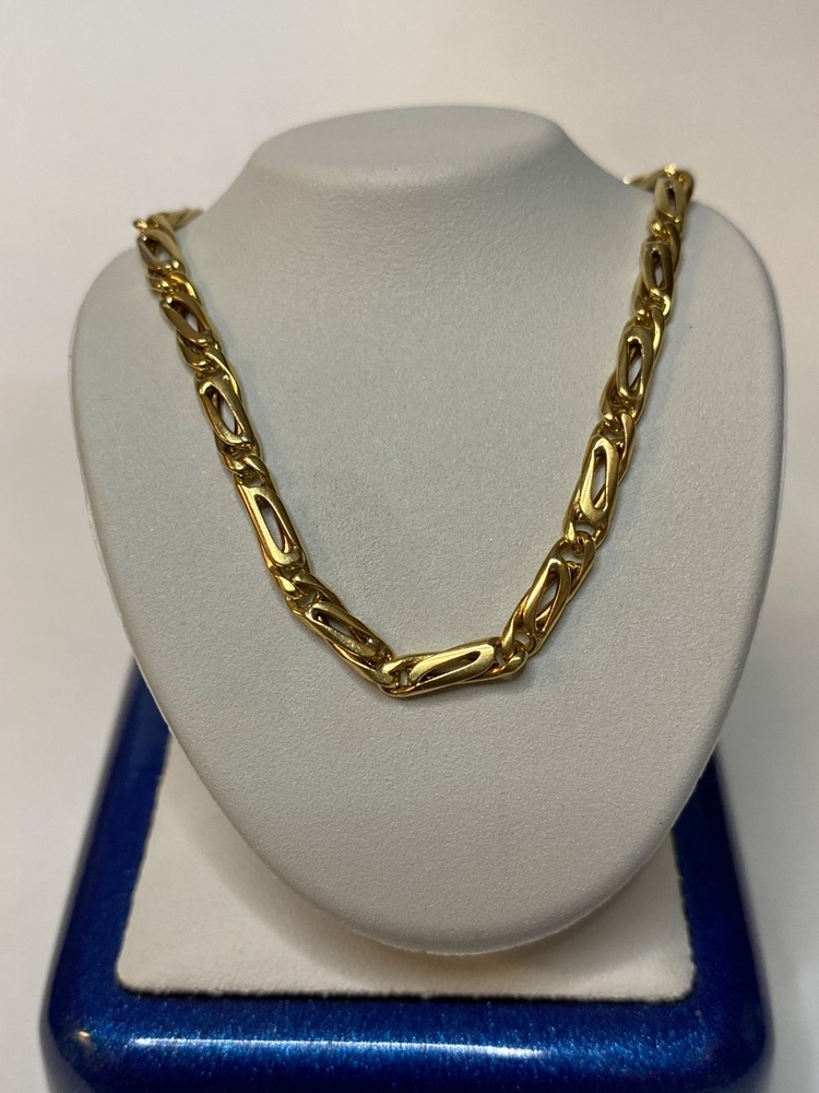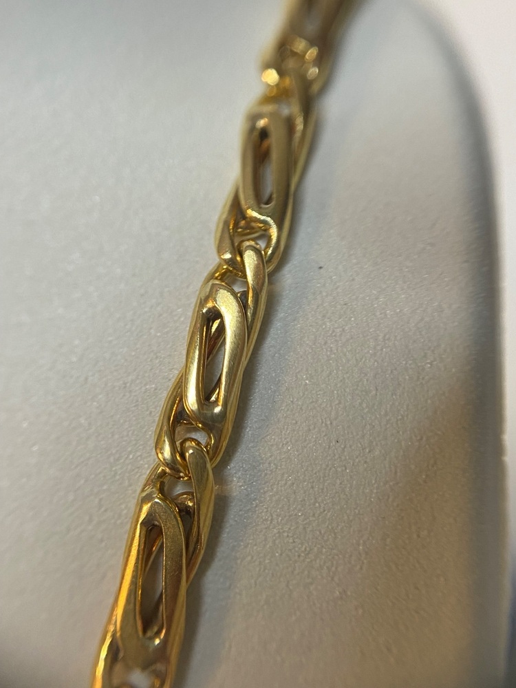With a substantial 17.80 grams of gold and a 3mm thickness, this piece offers a bold, luxurious presence while still laying comfortably against the skin. Fancy-link chains like this are prized for their artistry and uniqueness—each manufacturer creates its own interpretation, making designs like this truly stand out from the classic everyday chains.