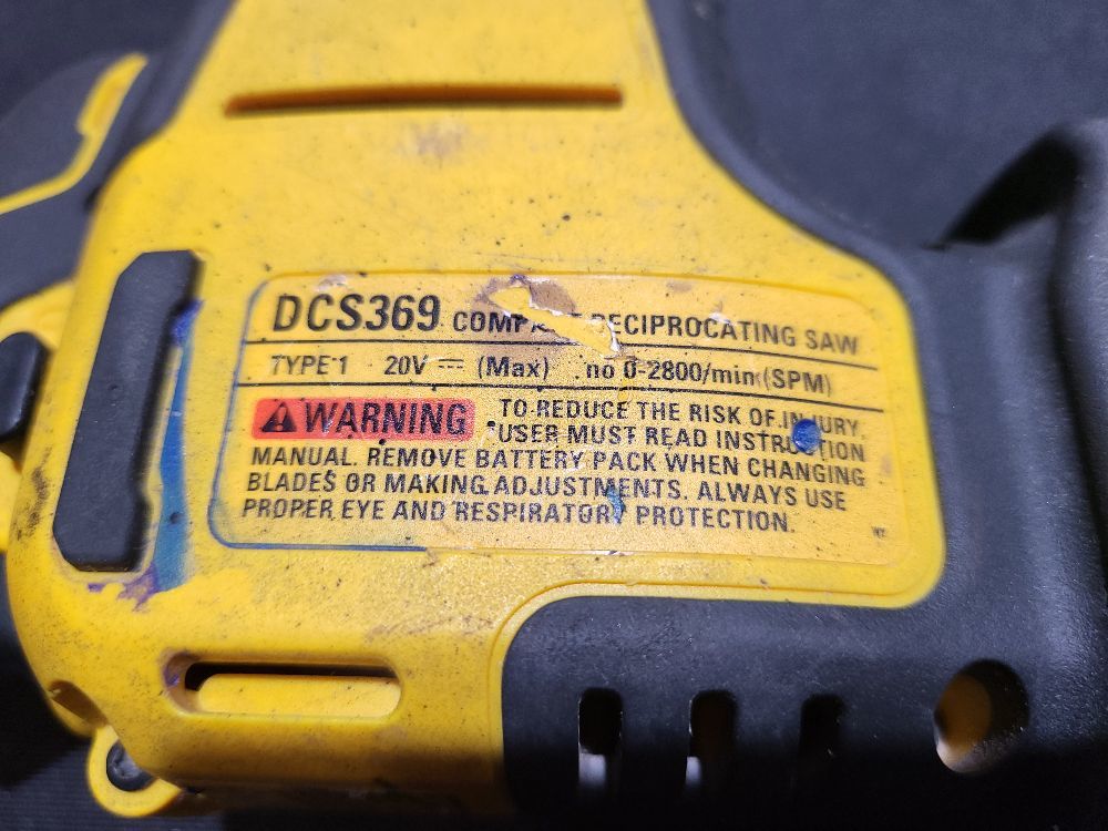 Featuring a brushless motor, the DCS369 provides efficient power delivery and longer runtime while reducing maintenance compared to brushed models. Its variable speed trigger gives precise control over cutting speed, and the tool free blade release makes swapping blades fast and simple — perfect when you’re switching between wood, metal, or pipe cutting.