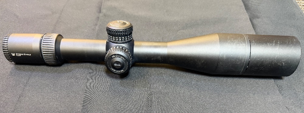 This high-performance Vortex Strike Eagle 5–25×56 riflescope delivers exceptional clarity, precision, and long-range capability. Designed for shooters who demand accuracy and reliability, it features a large 56mm objective lens that brings in impressive light for crisp, bright visuals—clearly seen in the provided sight picture.